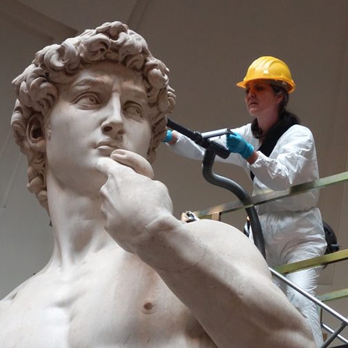 The conservation nightmare never ends with this masterpiece, Peter. Remember that flawed marble I mentioned? Those defects are still trying to destroy David 500 years later.